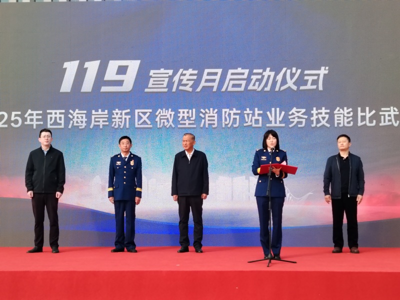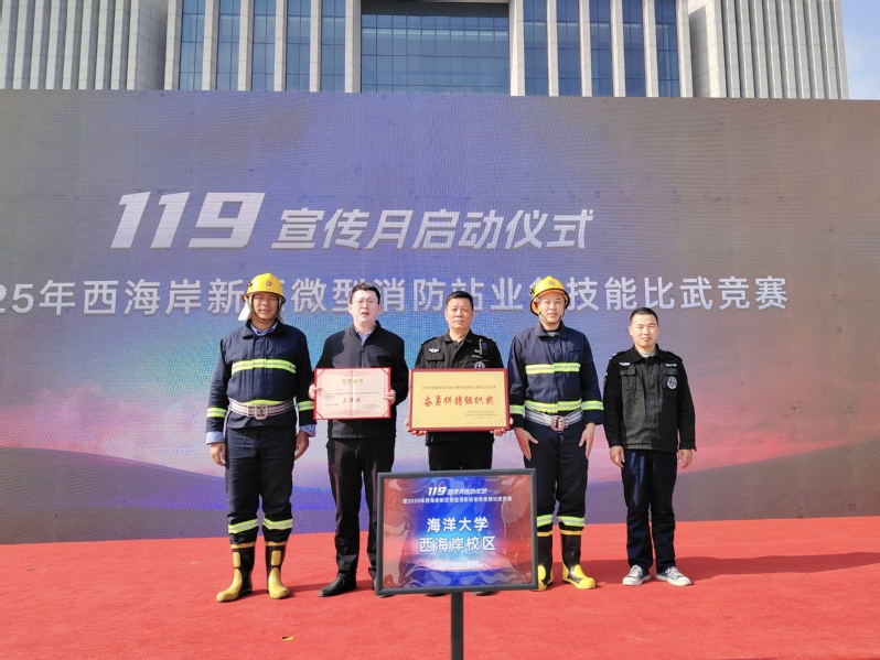 11月7日,西海岸新区在我校西海岸校区举办“119”消防宣传月启动仪式暨2025年青岛西海岸新区微型消防站业务技能比武竞赛。西海岸新区区领导徐强,青岛市黄岛区消防救援大队大队长张晓光、青岛经济技术开发区消防救援大队大队长侯峰、中国海洋大学西海岸校区运行管理部部长李永贵、中国海洋大学西海岸校区运行管理部副部长、保卫处副处长(兼)张宝平出席开幕仪式。