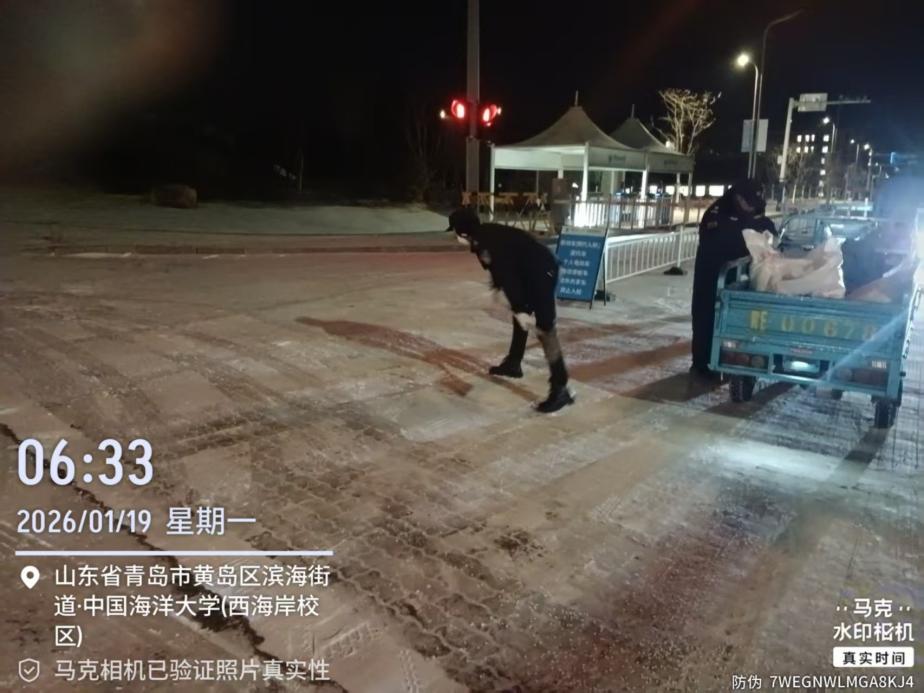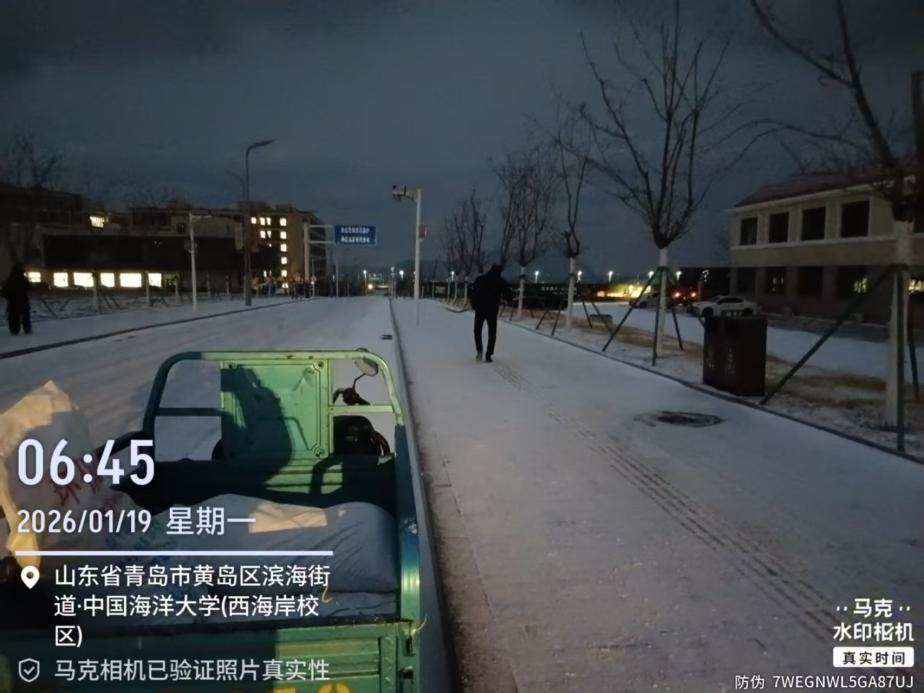 2026年新年伊始,一场瑞雪翩然而至,同时也给西海岸校区师生出行和校园平稳运行带来了考验。面对突如其来的雪情,校区第一时间启动雨雪冰冻天气应急预案,秉持“以雪为令,闻雪而动”的应急响应原则,统筹校区物业安保、保洁、绿化、维修、能源等多部门力量高效协同作战,迅速投身除雪除冰、防冻保暖各项保障工作,为全校师生筑牢冬日安全防线。